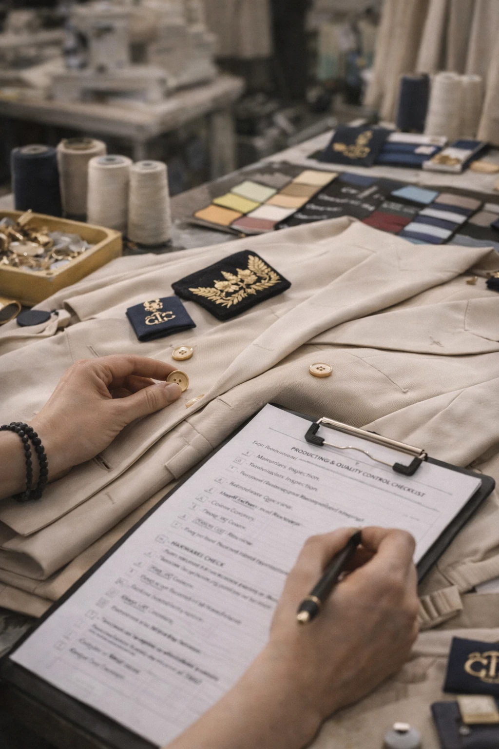 - Embroidery placement, seam construction, finishing quality, and stress-point reinforcement verification.
